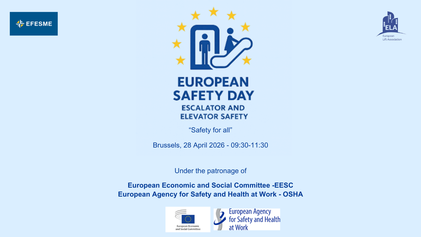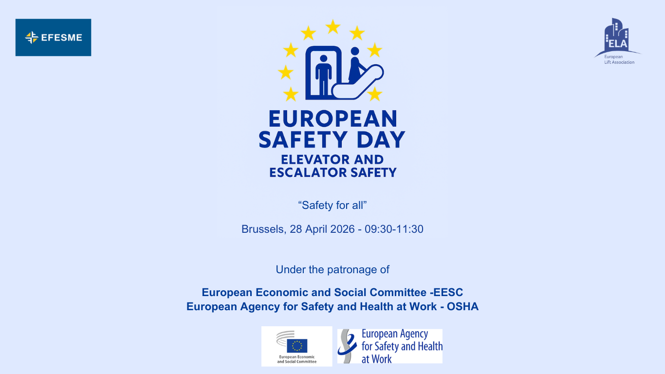 The European Lift Association (ELA) is the voice of the lift, escalator and moving walk industry in Europe, including their components manufacturers. We support and represent the interests of our members and promote quality, safety and the highest technical standards. To this end, we engage with the European Commission,the European Parliament and other relevant institutions and organizations. It is our mission to move urban mobility and accessibility onwards and upwards into a safe, sustainable future.